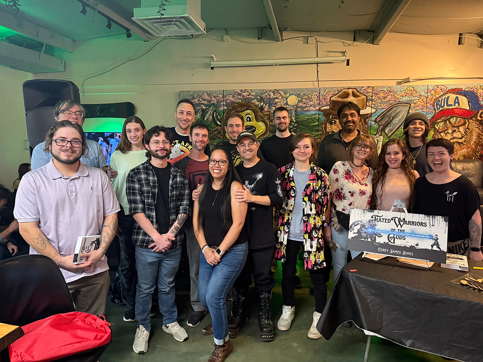 Now, let's talk about the release party. It was genuinely special! I owe a massive, teary-eyed thank you to everyone who showed up. The support was so overwhelming that I almost needed a fainting couch. My biggest fear wasn't fumbling my words while reading a sample; it was showing up to an empty room, reading to a potted plant named Harold, who probably wouldn't buy the book anyway. But you guys saved me from that embarrassment! I've included these photos from the event to prove that even a guy who is neurologically divergent, deals with dyslexia, and is an HSP (Highly Sensitive Person, for those playing along at home) can break all the rules and still come out smelling like... well, a French maid. Yes, I know that makes zero sense, but it makes me giggle, so we’re rolling with it! Thanks again for celebrating the birth of Fated Warriors of the Gods with me! Now go buy a copy and let's get this party really started!